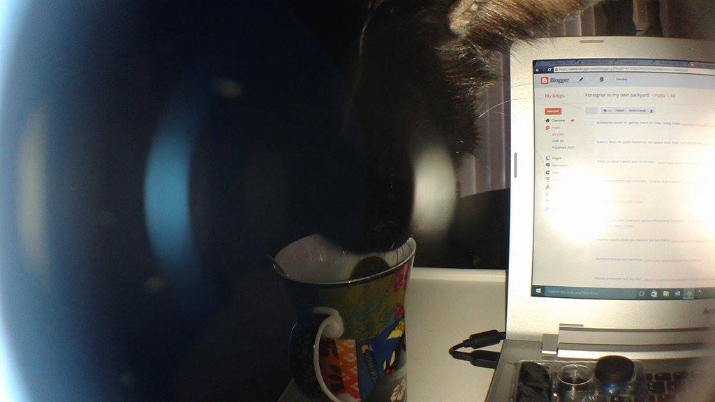 Amanda found a cell phone camera lens kit in the check out isle in Wal-mart last night. Fun fact, don't leave the flash on when using them. By the way, that's Narcisa checking out the pickle in my cup.